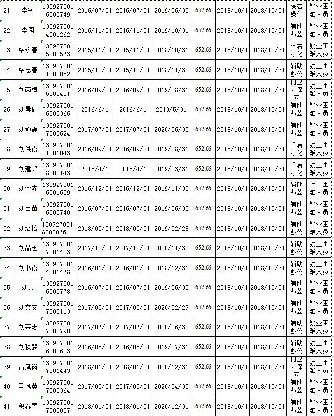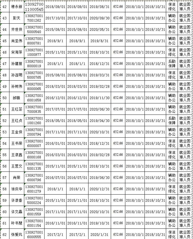 2018.10公益性岗位社保补贴公示
