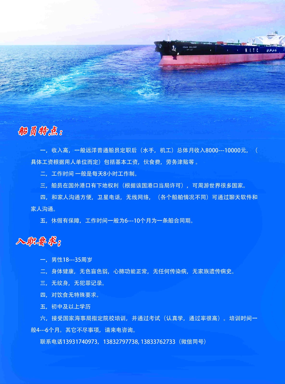 新邦国际海员招聘