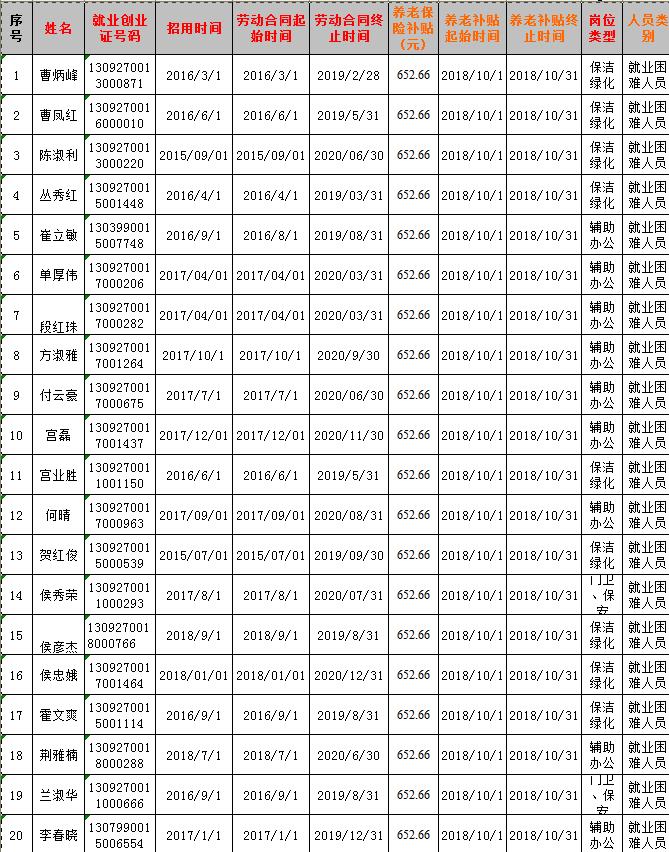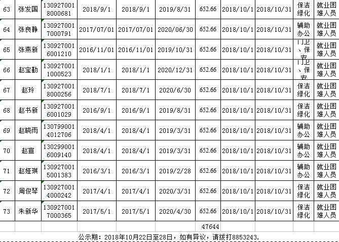 2018.10公益性岗位社保补贴公示