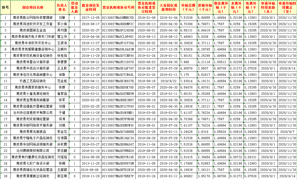 拨付众帮孵化基地202006-11房租物业水电费补贴公示